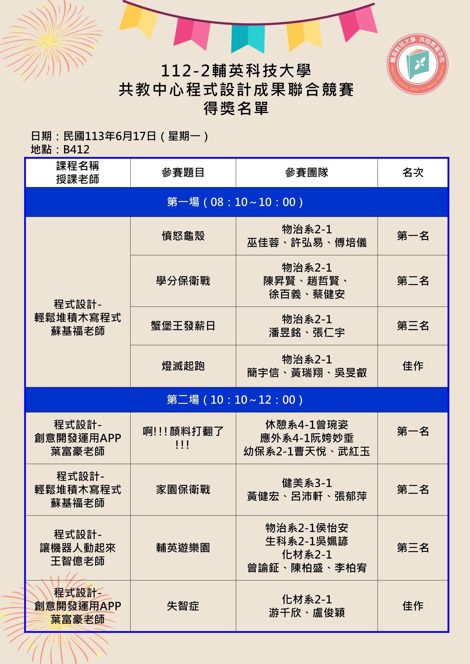 112-2程式設計成果聯合競賽得獎名單